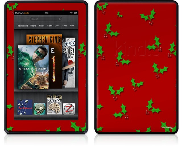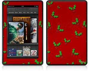 Amazon Kindle Fire (Original) Decal Style Skin - Christmas Holly Leaves on Red