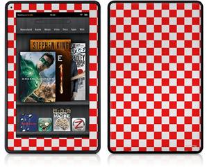 Amazon Kindle Fire (Original) Decal Style Skin - Checkered Canvas Red and White