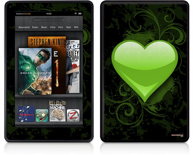 Amazon Kindle Fire (Original) Decal Style Skin - Glass Heart Grunge Green