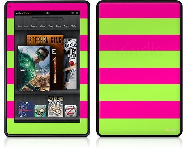 Amazon Kindle Fire (Original) Decal Style Skin - Kearas Psycho Stripes Neon Green and Hot Pink