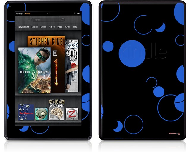 Amazon Kindle Fire (Original) Decal Style Skin - Lots of Dots Blue on Black