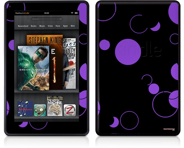 Amazon Kindle Fire (Original) Decal Style Skin - Lots of Dots Purple on Black