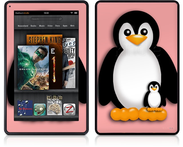 Amazon Kindle Fire (Original) Decal Style Skin - Penguins on Pink