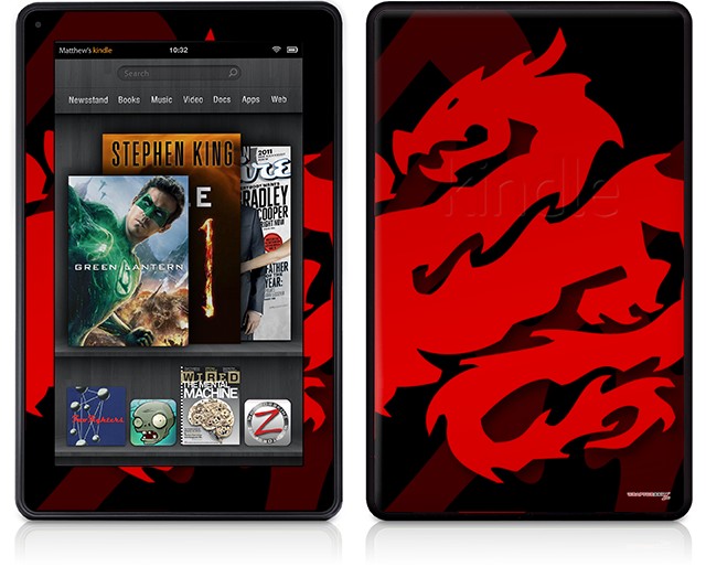 Amazon Kindle Fire (Original) Decal Style Skin - Oriental Dragon Red on Black