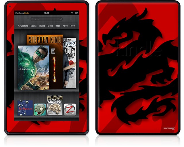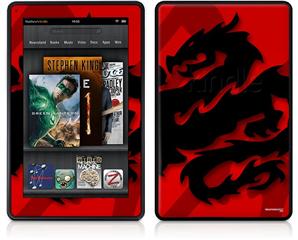 Amazon Kindle Fire (Original) Decal Style Skin - Oriental Dragon Black on Red