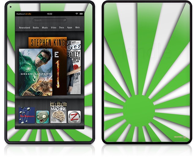 Amazon Kindle Fire (Original) Decal Style Skin - Rising Sun Japanese Flag Green