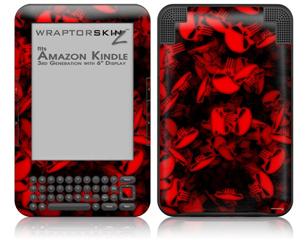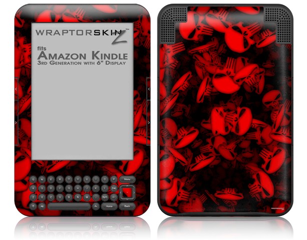 Skulls Confetti Red - Decal Style Skin fits Amazon Kindle 3 Keyboard (with 6 inch display)