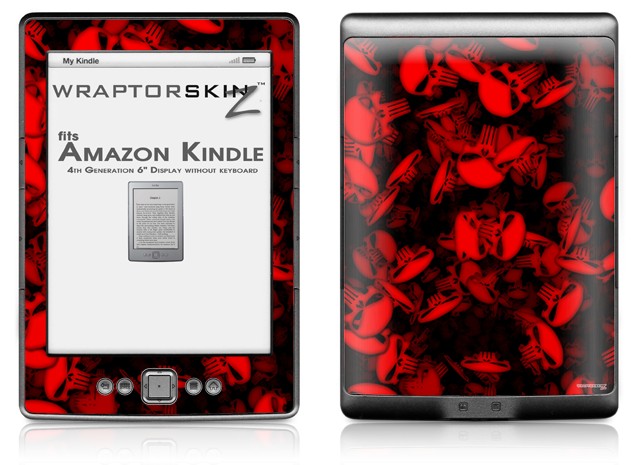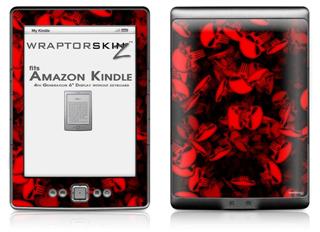 Skulls Confetti Red - Decal Style Skin (fits 4th Gen Kindle with 6inch display and no keyboard)