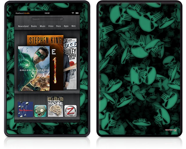 Amazon Kindle Fire (Original) Decal Style Skin - Skulls Confetti Seafoam Green