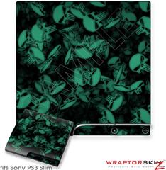 Sony PS3 Slim Skin - Skulls Confetti Seafoam Green
