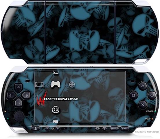 Sony PSP 3000 Decal Style Skin - Skulls Confetti Blue