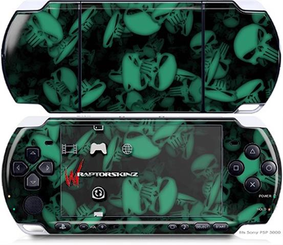 Sony PSP 3000 Decal Style Skin - Skulls Confetti Seafoam Green
