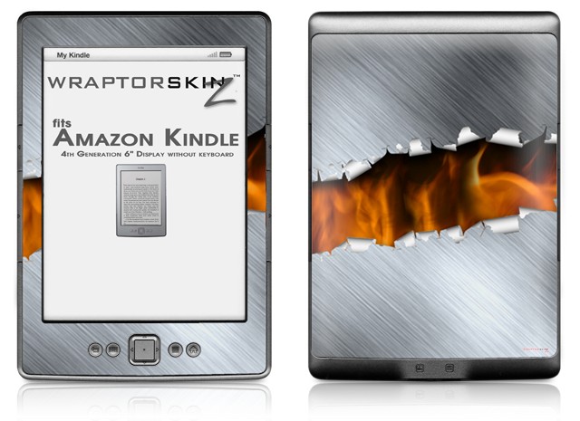 Ripped Metal Fire - Decal Style Skin (fits 4th Gen Kindle with 6inch display and no keyboard)