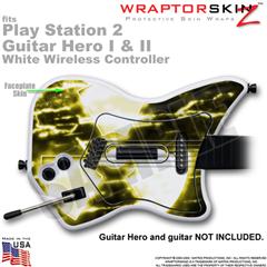 PS2 Guitar Hero I & II White Wireless Radioactive Yellow Skin