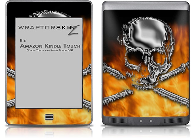 Chrome Skull on Fire - Decal Style Skin (fits Amazon Kindle Touch Skin)