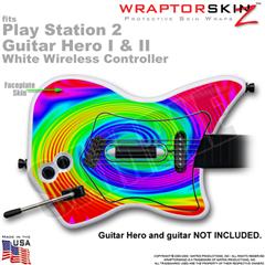 PS2 Guitar Hero I & II White Wireless Rainbow Swirl Skin