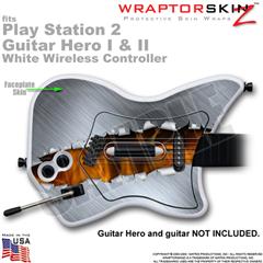 PS2 Guitar Hero I & II White Wireless Ripped Metal Fire Skin