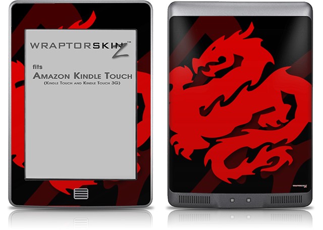 Oriental Dragon Red on Black - Decal Style Skin (fits Amazon Kindle Touch Skin)