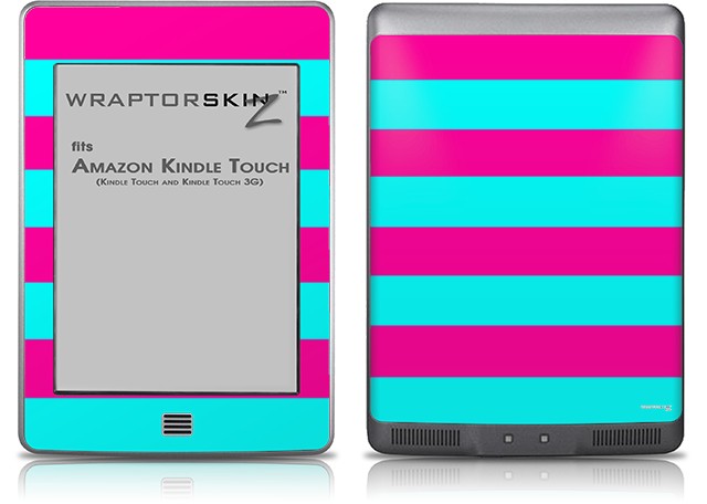 Kearas Psycho Stripes Neon Teal and Hot Pink - Decal Style Skin (fits Amazon Kindle Touch Skin)