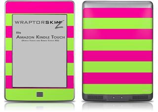Kearas Psycho Stripes Neon Green and Hot Pink - Decal Style Skin (fits Amazon Kindle Touch Skin)