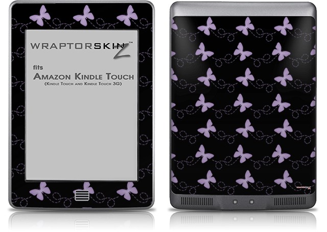 Pastel Butterflies Purple on Black - Decal Style Skin (fits Amazon Kindle Touch Skin)