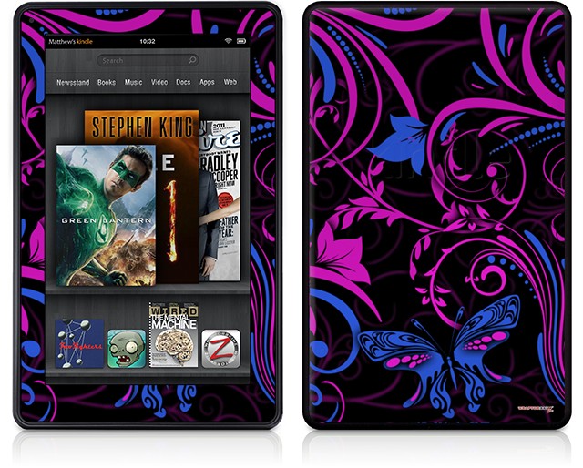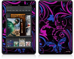 Amazon Kindle Fire (Original) Decal Style Skin - Twisted Garden Hot Pink and Blue
