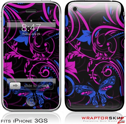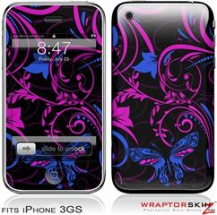 iPhone 3GS Decal Style Skin - Twisted Garden Hot Pink and Blue
