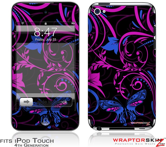 iPod Touch 4G Skin - Twisted Garden Hot Pink and Blue