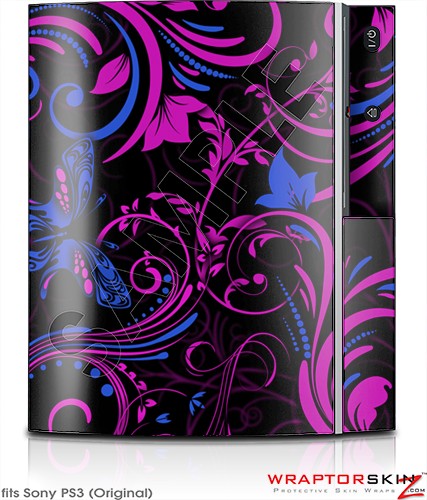 Sony PS3 Skin Twisted Garden Hot Pink and Blue
