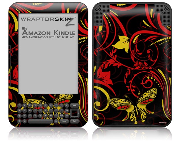 Twisted Garden Red and Yellow - Decal Style Skin fits Amazon Kindle 3 Keyboard (with 6 inch display)