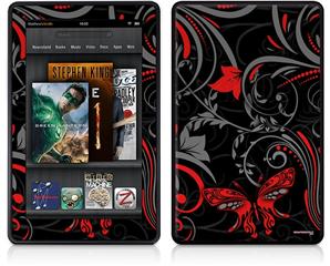 Amazon Kindle Fire (Original) Decal Style Skin - Twisted Garden Gray and Red