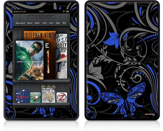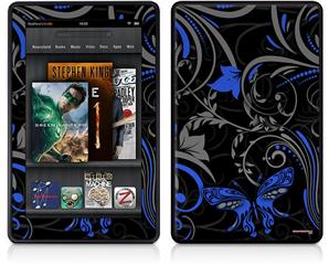 Amazon Kindle Fire (Original) Decal Style Skin - Twisted Garden Gray and Blue