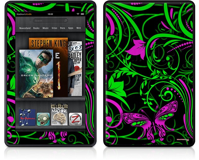 Amazon Kindle Fire (Original) Decal Style Skin - Twisted Garden Green and Hot Pink