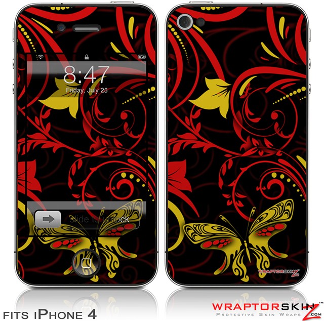 iPhone 4 Skin - Twisted Garden REd and Yellow