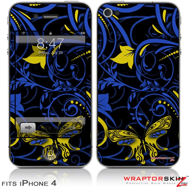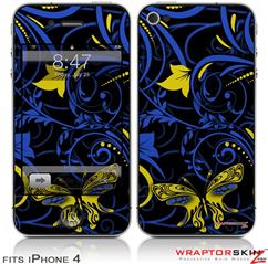 iPhone 4 Skin - Twisted Garden Blue and Yellow