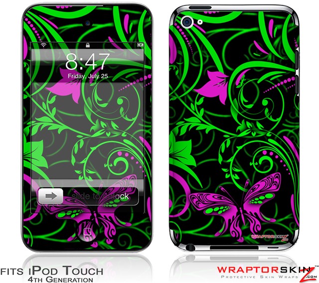 iPod Touch 4G Skin - Twisted Garden Green and Hot Pink
