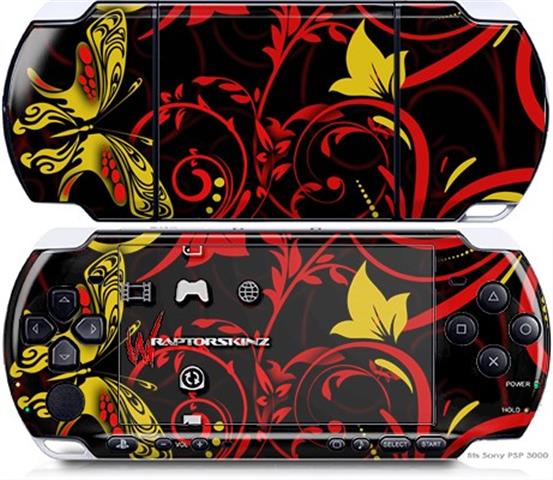 Sony PSP 3000 Decal Style Skin - Twisted Garden Red and Yellow