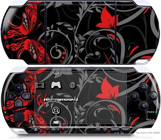 Sony PSP 3000 Decal Style Skin - Twisted Garden Gray and Red