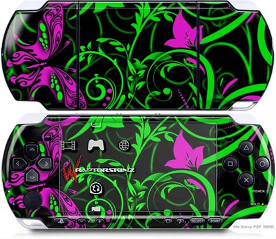 Sony PSP 3000 Decal Style Skin - Twisted Garden Green and Hot Pink