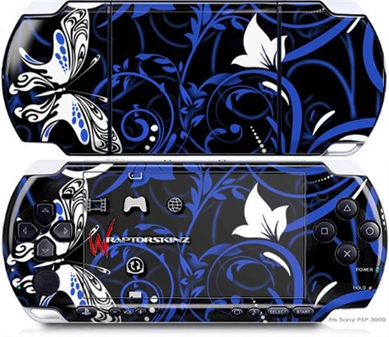 Sony PSP 3000 Decal Style Skin - Twisted Garden Blue and White
