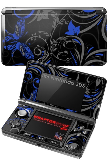 Nintendo 3DS Decal Style Skin - Twisted Garden Gray and Blue