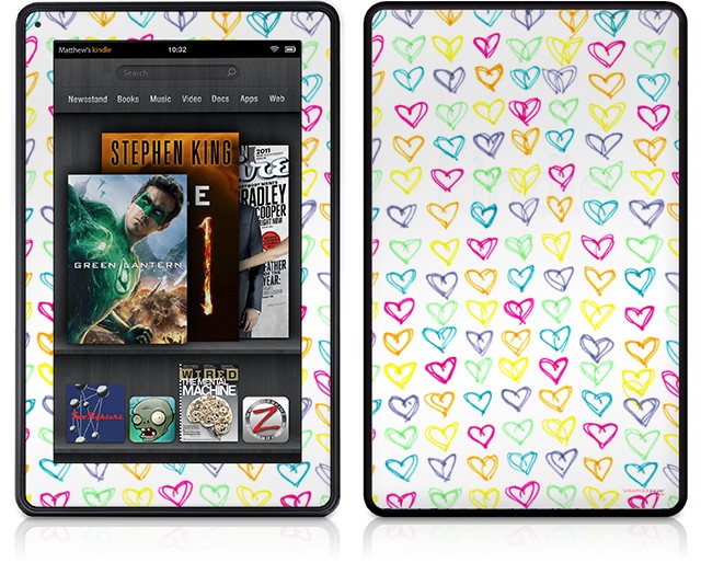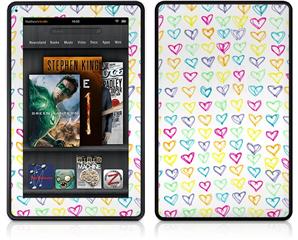 Amazon Kindle Fire (Original) Decal Style Skin - Kearas Hearts White