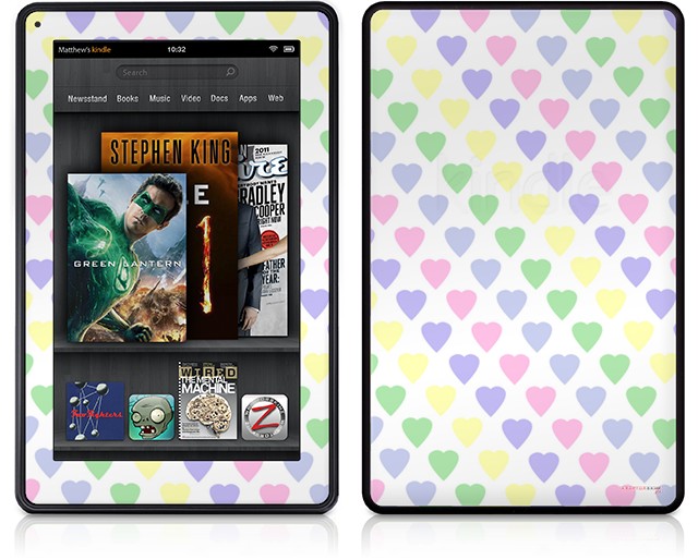 Amazon Kindle Fire (Original) Decal Style Skin - Pastel Hearts on White