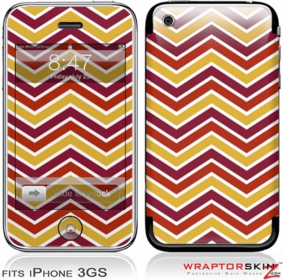 iPhone 3GS Decal Style Skin - Zig Zag Yellow Burgundy Orange