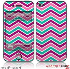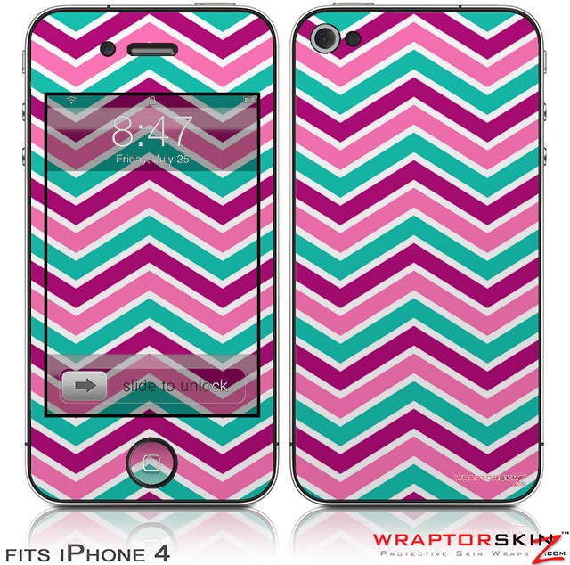 iPhone 4 Skin Zig Zag Teal Pink Purple