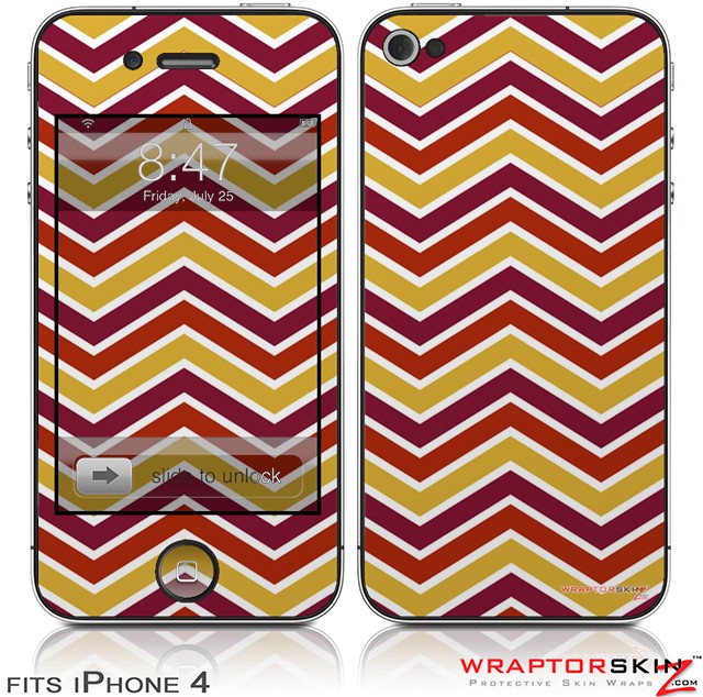 iPhone 4 Skin Zig Zag Yellow Burgundy Orange