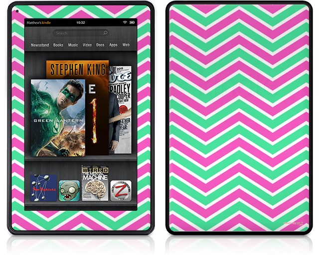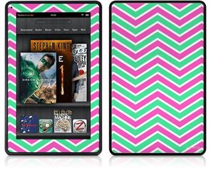 Amazon Kindle Fire (Original) Decal Style Skin - Zig Zag Teal Green and Pink