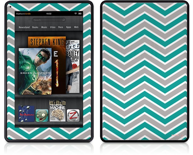 Amazon Kindle Fire (Original) Decal Style Skin - Zig Zag Teal and Gray