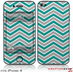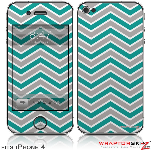 iPhone 4 Skin Zig Zag Teal and Gray
