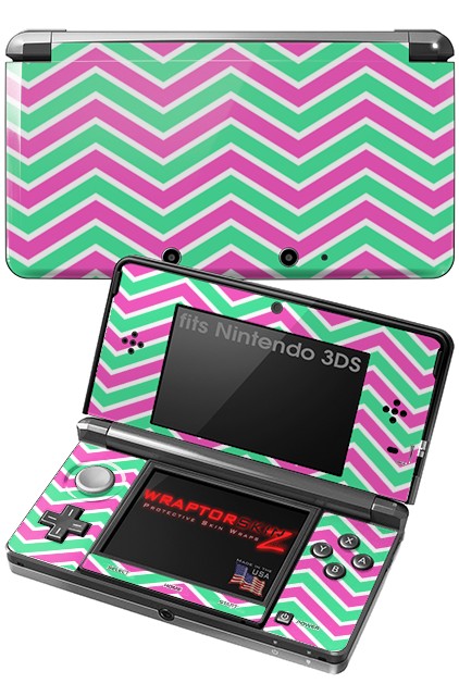 Nintendo 3DS Decal Style Skin - Zig Zag Teal Green and Pink